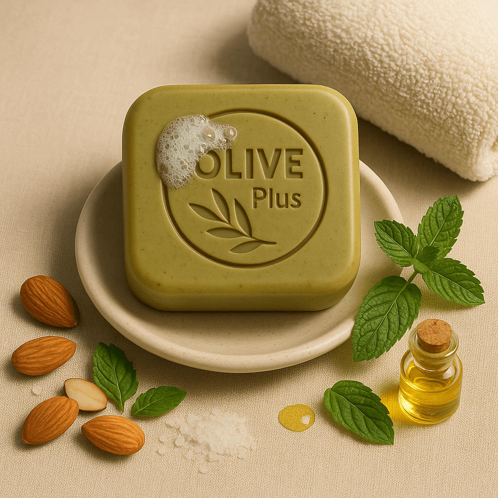Refresh and revive your skin with the Olive Plus Almond & Mint Oil Soap Bar, crafted with virgin olive oil, sweet almond oil, dried mint leaves, and cooling mint essential oil.
