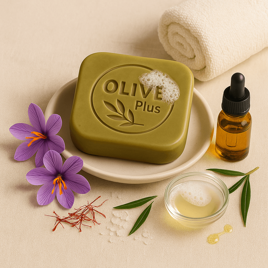 Discover a clarifying, naturally brightening cleanse with the Olive Plus Saffron & Tea Tree Oil Soap Bar, crafted with organic virgin olive oil, antioxidant-rich saffron, and purifying tea tree oil.